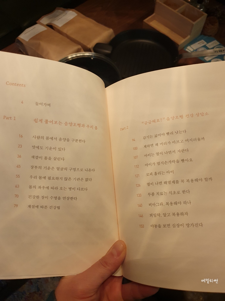 감기는 굶어야 낫는다더니.. 어르신들이 했던 말이 사실이 아니었나보다 ㅋ 라며 책에 흥미를 가진다. 옛부터 잘 먹어야 감기를 낫는다고 했었는데, 신기한 내용들이 또 내가 알아야 할 내용들이 있을 것만 같다. ? 총 네개의 파트로 나누어졌는데. 쉽게 풀어보는 음양오행과 우리몸, 궁금해요 음양오행 건강 상담소 만성질혼을 다루는 음양오행 치유법 건강의 질을 높이는 최강의 방법이다. ? 음양오행이란 말이 건강을 알아볼 때 참 많이 나오는데, 나는 과연 어떤 것에 속하는지 알수 있었다. 우리 몸에 맞는 영양제는 어떤 것들이 있는지, 걷기가 왜 중요한지, 왜 감기가 걸렸을 때는 먹지 말라고 하는지 이야기해준다. 제목에서처럼 감기가 걸렸을 때는 몸을 살리려는 인체의 치유능력이 있어서 감기로 아프게 되면 음식을 먹을 필요가 없다고 말해준다. 또한 제철음식을 골고루 먹어야 하는 것, 물 많이 마시기, 계절에 따른 자연의 흐름에 맞게 생활하기 등... 책을 보다보면 아~ 우리가 사시사철 해야할 일들이 참 많다는 생각도 들다가도 건강을 위해서라면 이런 것쯤은 조금만 신경써도 할 수 있겠다는 생각이 들었다. ? [본 리뷰는 문화충전200 네이버 카페에서 책을 제공받아 솔직하게 쓴후기입니다]