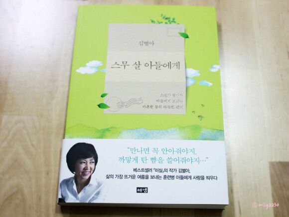 베스트작가 <미실>로 유명한 김별아 소설가님의 스무 살 뜨거운 여름에 입대한 아들에게 전하는 38편의 편지와 백일과 첫돌때 쓴 편지까지 총 41편의 편지로 구성이 되어있는 책이예요 아들을 군 입대 보내면서 매일 써나간 편지 속에는 엄마의 마음이 고스란히 잘 나타나 있는거 같아요