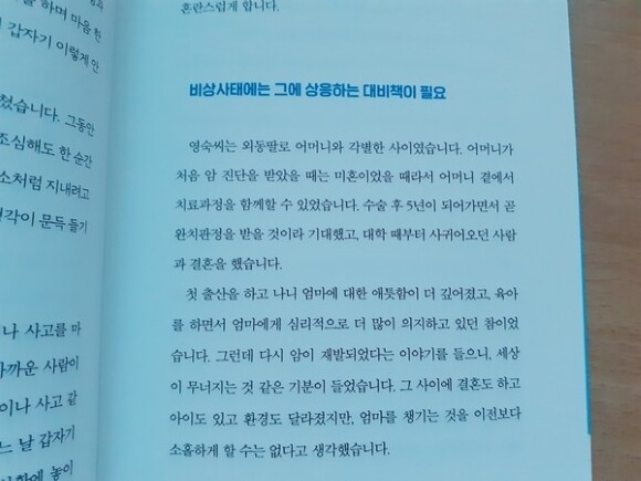책에서 말하는 건, (때로는) 새로운 행동방식이 필요하다는 쪽입니다. "가족은 본디 '지지적'이고 친밀감을 요구하는 관계이다(p31)." 이전에는 이렇게 하는 게 문제가 없었는데... 라는 생각이 들면 변화가 더 어렵습니다. 그러나 이런 경우, 즉 "내가 먼저 변해야 할 때"도 있다는 걸 수용하고, 모두가 행복하기 위해 내가 먼저 이니셔티브를 취할 필요가 있습니다.